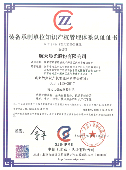 航天晨光股份有限公司  >  關(guān)于我們  >  榮譽資質(zhì) > 正文