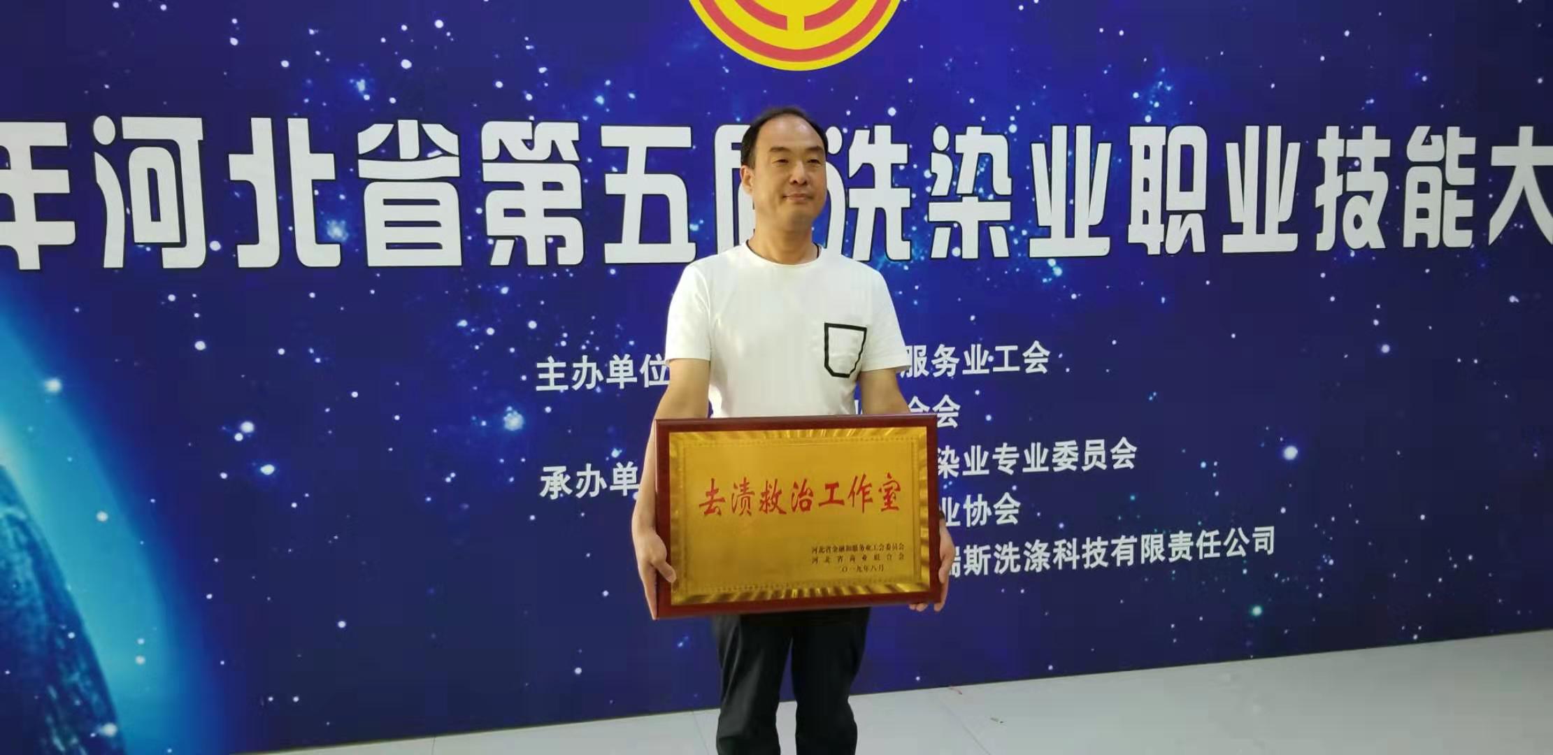2019年8月31日"2019河北省第五屆洗染業(yè)職業(yè)技能大賽"圓滿落幕,本次大賽賽出水平、賽出風(fēng)格,并選拔出了一大批高技能領(lǐng)軍人才,為了發(fā)揚(yáng)和保持大賽精神,從而使我省洗染技術(shù)更進(jìn)一步得到提高,通過(guò)本次大賽確定了五項(xiàng)技能“工作室”,其中“去漬救治工作室”在我石家莊新航星洗滌設(shè)備公司掛牌成立!